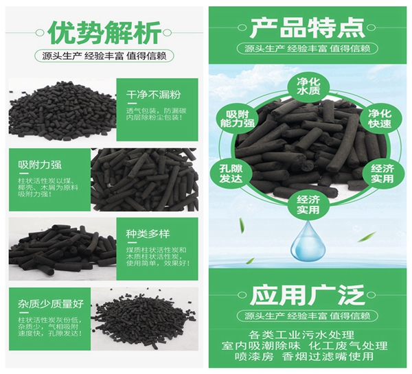 2、煤質柱狀活性炭是多孔型吸附劑,所以在運輸儲存和使用過程中,都要絕對防止水浸,因水浸后,大量水充滿活性空隙,使其失去作用。